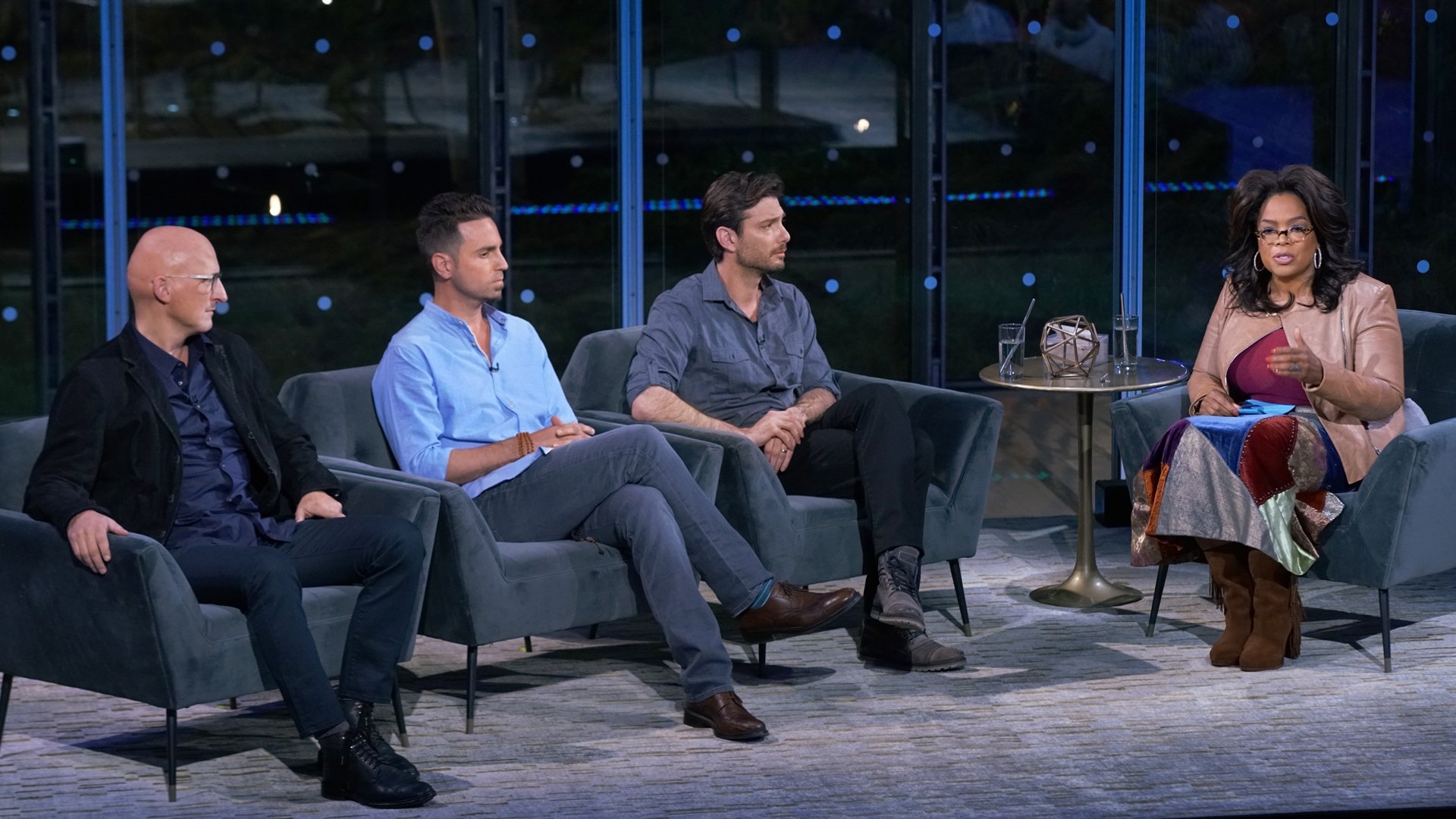 Oprah Winfrey hosts a conversation featuring Wade Robson and James Safechuck, alongside Leaving Neverland director Dan Reed, before an audience of survivors of sexual abuse and others whose lives have been impacted by it.